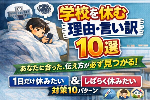 この記事では、「1日だけ休みたいとき」に使える理由5つと「しばらく休みたいとき」に使える理由5つの合計10選を紹介します。さらに、理由がうまく言えないときの対処法や、親・学校への伝え方のコツもまとめました。